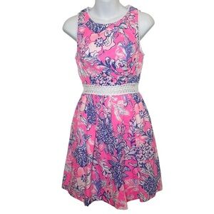 Lilly Pulitzer Alivia pink tropics sleeveless fit flare a line dress size 0