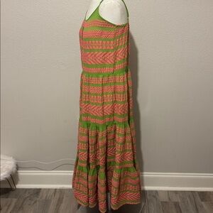 Devotion TWINS Arsida Embroidered Pink and Green Maxi Dress