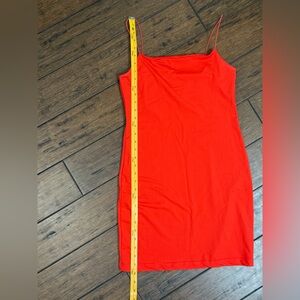 Striking red dress with sleek design body, Con spaghetti straps Ideal for standout style.