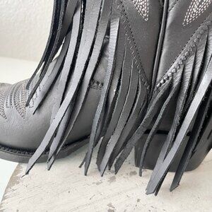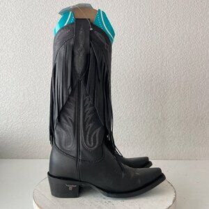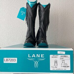 Lane SENITA FALLS Black Cowboy Boots Fringe Western Tall Snip Toe Womens Size 5