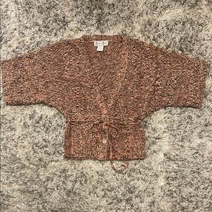 Stylish textured knit cardigan. Features a tie waist and button closure. Perfect for layering.