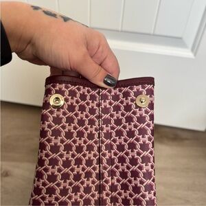This style features the brand’s iconic spade link pattern printed on coated canvas — no metal or chain hardware (the “link” refers to the design pattern only).