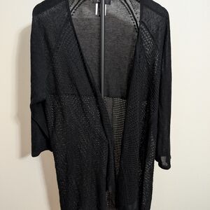 Style & Co. Black Mesh Long Cardigan Duster Size L - Sheer Knit Layering
