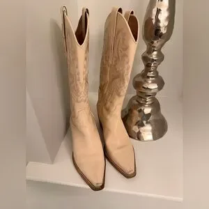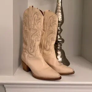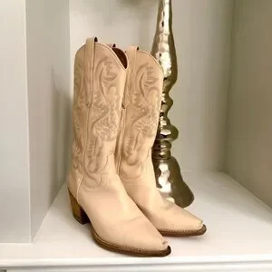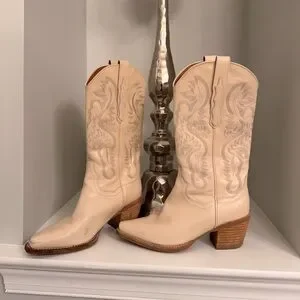 Step out in style with these elegant cream Western boots. Perfect for any occasion, these boots offer both comfort and fashion-forward design.