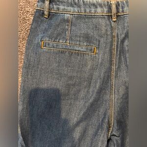 Chic Loft denim trouser jeans with classic stitching. High rise with front pleats, wide leg. Cotton/tencel blend. Ideal for everyday style. Worn just a couple times. Any discoloration shown in photos is a result of shadows, jeans are in excellent condition, size 10.