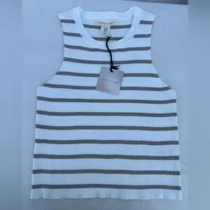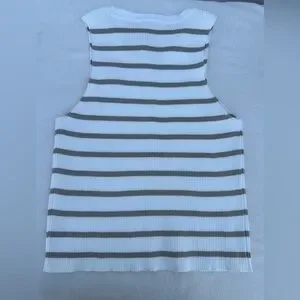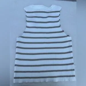 Elevate your casual wardrobe with the Striped Tank Top. Featuring a chic white and tan stripe pattern, this top is perfect for any occasion. Enjoy comfort and style with this versatile piece.