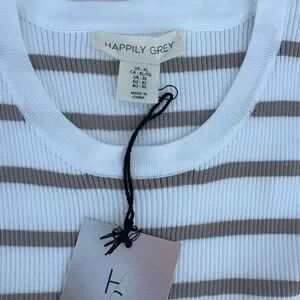 Happily Grey Striped Tank Top - White and Tan # A1