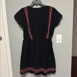 Black Boho Embroidered Mini Dress | Pink Folk Geometric | Tie Neck Size:Large. Not sure of brand bought from a boutique very cute!