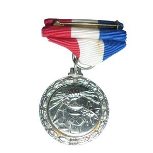 Keywords: award medal, commemorative item, collectible award, vintage award, patriotic ribbon, ceremonial medal, achievement award, historical collectible, souvenir, keepsake, decoration