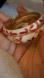 enameled bangle bracelet with red plumeria flowers and rhinestone centers. 2