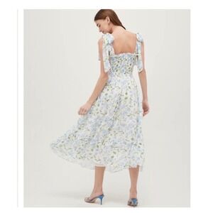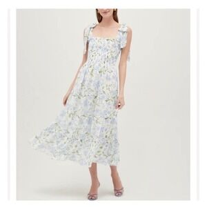 Hill House Home The Nap Dress Floral Smocked Midi Blue White Square Neck Small