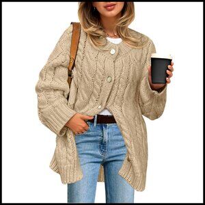Brand new with tags and in flawless condition — this chunky cable knit cardigan delivers a cozy, versatile look perfect for casual days, work, or evening outings. The soft, thick fabric is incredibly warm and comfortable, offering an oversized fit that can be styled multiple ways.