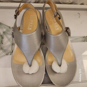 Ralph Lauren "Kasia" New Silver Thong sandals. Leather. NIB. Size 7