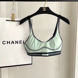 Featuring a mint green and black color-blocked design, the bra features a beautiful backless design and striped webbing waistband. The pants have double stripe details on the sides, creating a simple yet stylish and highly recognizable look. The overall design combines athletic functionality with a fashionable style. Suitable for casual wear at home, everyday outings, and workouts. It can be worn alone for a sexy look or layered under shirts or sweatshirts for added depth. Versatile for various styling options.