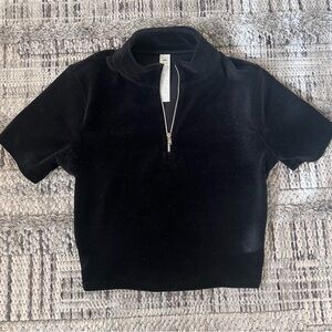 Alo Yoga Micro Corduroy Winter Break Mock Neck Short Sleeve Top Black Size XS