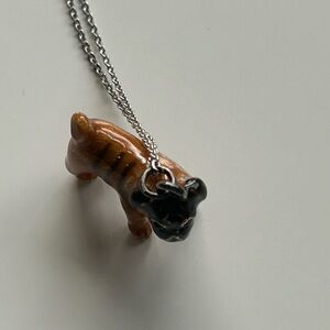 Charming fawn pug pendant necklace, perfect for pug lovers. Features a detailed design with a silver chain.