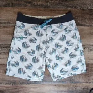 Patagonia Stretch Planing Boardshorts Size 35 In Fishbone Patterned Off-white