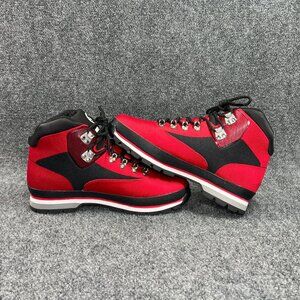 Timberland Euro Hiker Jacquard Boots Men's 9 Red Black Mid Lace Outdoor Hiking