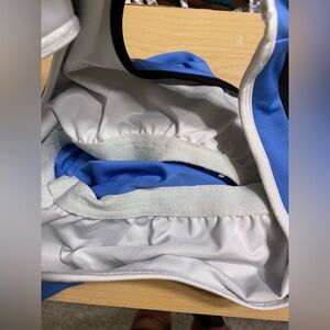 Y2K 2 Piece Racerback Tank Top with Built In Bra & Yoga Capri Pants Set by Be Inspired, Blue, Black & White, Medium