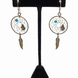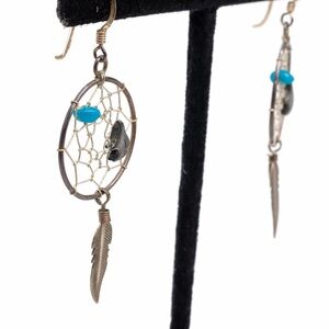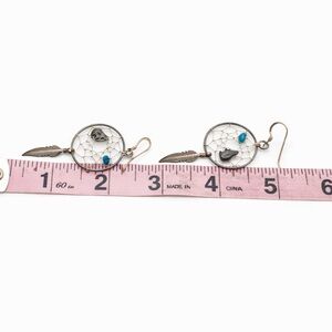 Dreamy sterling silver dreamcatcher earrings with turquoise accents and feather dangles 🌙