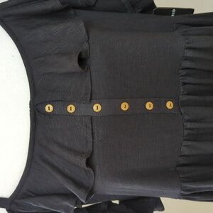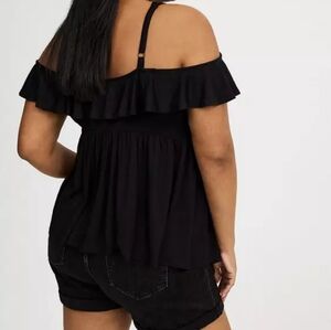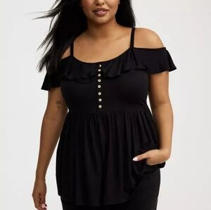 Elegant Black Ruffle Off-Shoulder Front Button Babydoll Top Size 1X