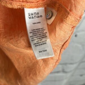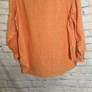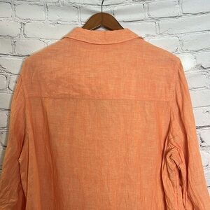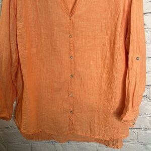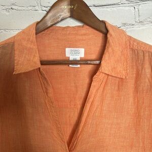 Sigrid Olsen Orange Linen Y Neck Button Down Collared Blouse Size 2X