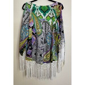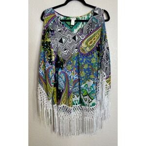 Chicos 3 US XL Colorful Floral Fringe Top Blouse Beach Fairy Hippie Travel READ