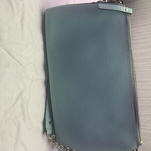 Elegant aqua leather bag with chain strap. Perfect for day or night. New never used