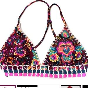 Xhilaration Burgundy Boho Floral Print Bikini Top