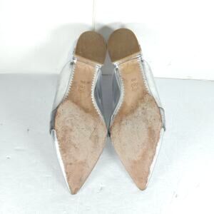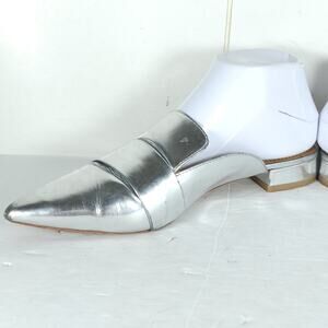 Tory Burch Women's Rosalind 20MM US9M Silver Leather Pointed Toe Slip on Flat Mules Shoes .