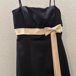 Chic black maxi dress by Alfred Angelo. Features a cream ribbon detail. Perfect for formal events.