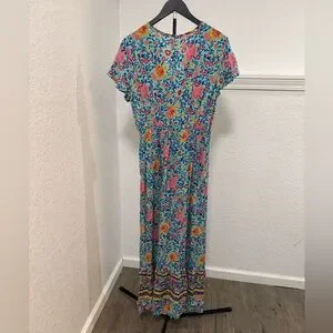 Beautiful floral maxi dress with vibrant colors. V neck. EUC - size XL. Wrap style.