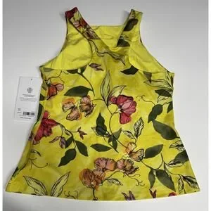 Athleta Conscious Support Iris Floral Yellow Racerback Athletic Top Small New