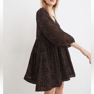 Madewell Crinkle Georgette V-Neck Babydoll Dress in Brushed Texture