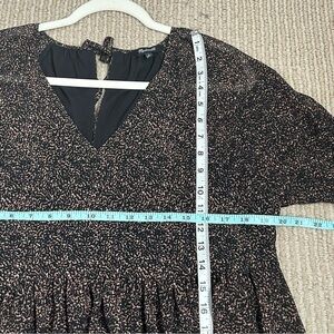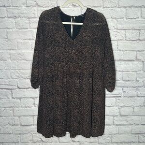 Made of crinkled georgette, this swingy babydoll dress has a V-neck and sheer sleeves. Versatile enough for home or away.