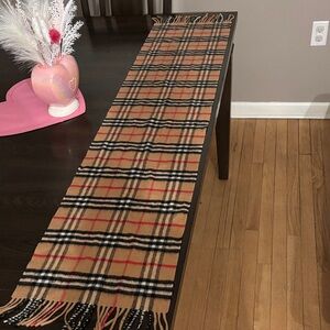💯 cashmere AUTHENTIC Burberry scarf with iconic check pattern. Features camel, red, black, and white tones. Adds sophistication to any look. It’s 53” long and 12” wide. Please message with any questions!!! It’s in mint condition!
