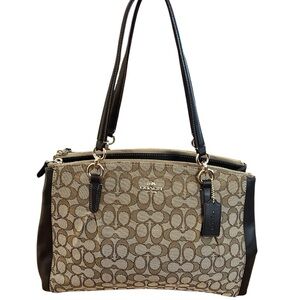 #coach #coachbag #christiecarryall #coachtote #coachsignature #designerbag #workbag #monogram #brownhandbag #poshmarks