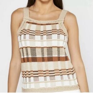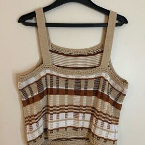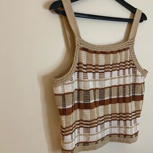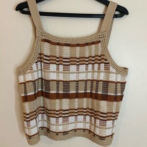 Banana Republic Cotton Beige and Brown Checkered Crochet Knit Top size XL