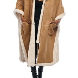 AZALEA WANG Faux Shearling Poncho Coat
