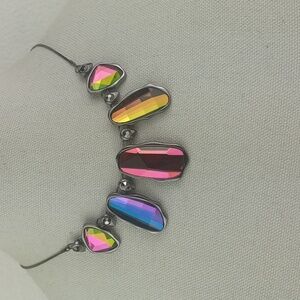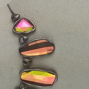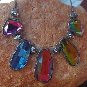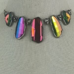 Stunning Edgy Gun Metal multifaceted multicolor highly reflective oil spill stone necklace.