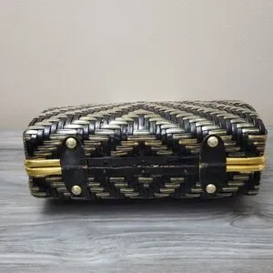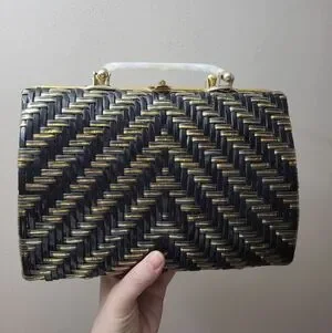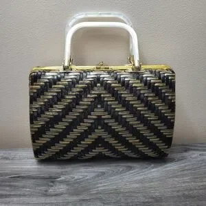 Vintage Stylecraft Black Gold Woven Plastic Handbag MCM