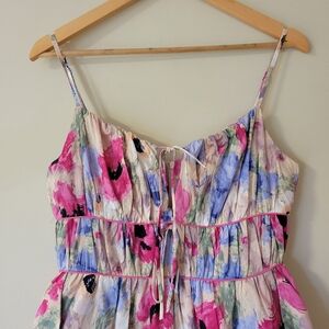 Aureum Women's Watercolour Spring Floral Bubble Hem Romper Size Medium