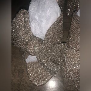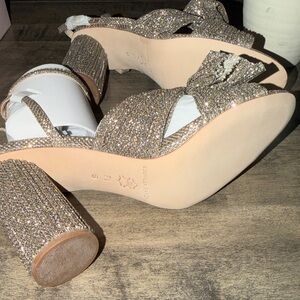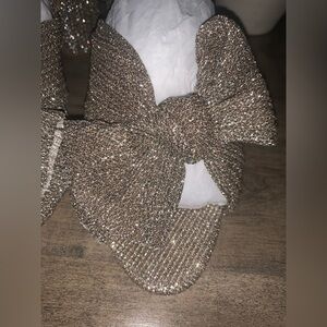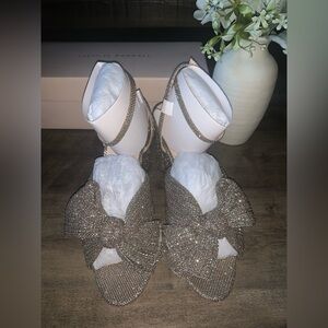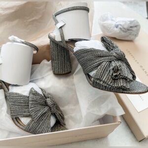 NIB LOEFFLER RANDALL CAMELLIA CHAMPAGNE PLEATED BOW ROUND HEEL