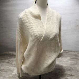 Talbots Cream Chunky Knit Wrap Neck Sweater Size Small NWOT Cozy Winter