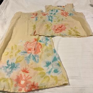 Elegant floral top and skirt set by David Dart. Features a blend of pastel colors on a cream background.