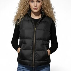 Vintage Y2K Sideout Goose Down Vest Size Medium Black Zip Pockets Thick Heavy