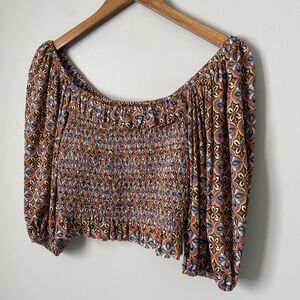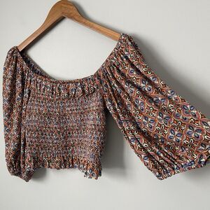 Urban Outfitters Smocked Crop Top Patterned Flowy Bohemian Women's Medium