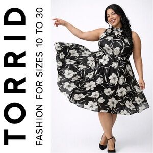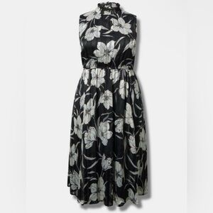 Torrid Black & White High Neck Floral A-Line Midi Sleeveless Dress, Large, NWT!