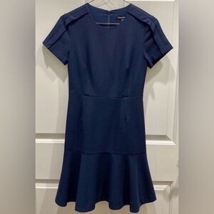 Banana Republic Petite Dark Navy Fit & Flare Short Sleeve Flounce Dress Size 0