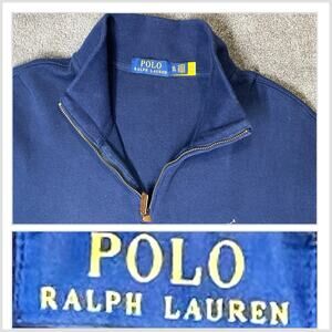 Polo Ralph Lauren MenXL TG Blue Double-knit 1/4Zip Pullover Mockneck Sweater